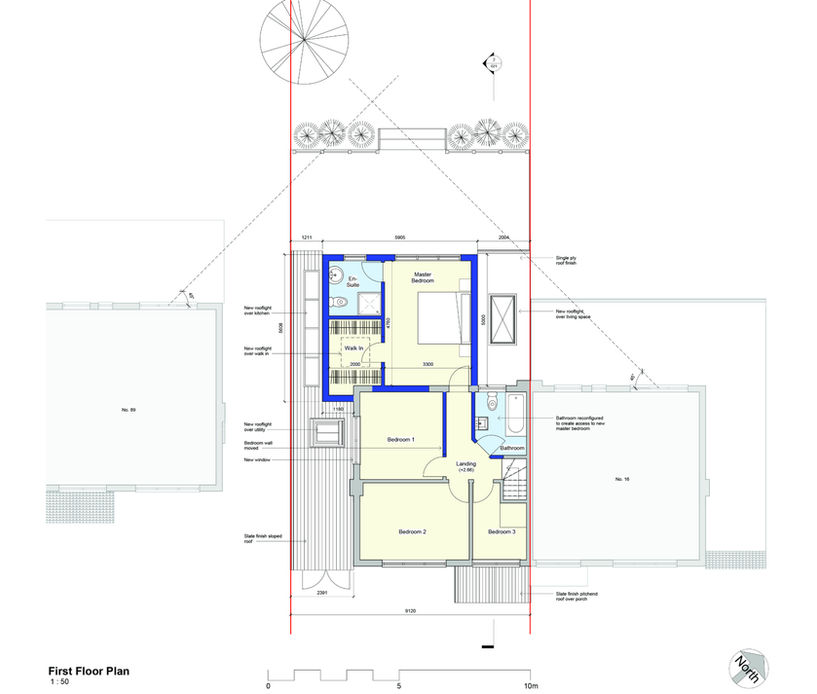 Double storey extension to family home to replace an existing conservatory and create a comfortable open plan living space on the ground floor with master suite on the first floor.